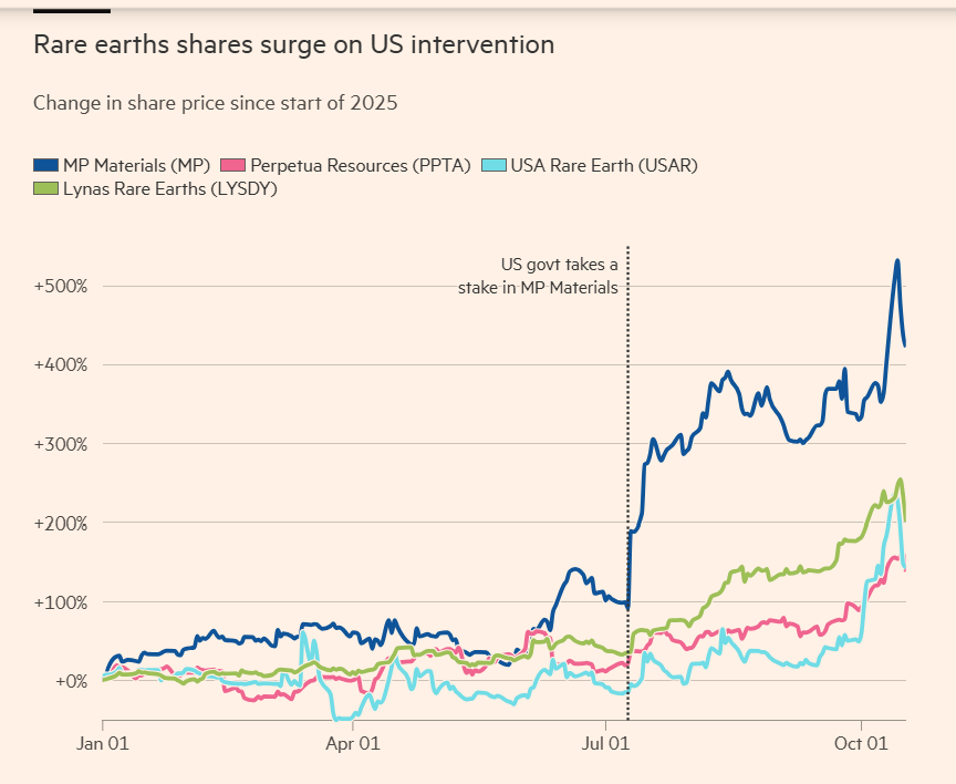ABD’de işlem gören MP Materials ve USA Rare Earth, Avustralya’nın Lynas Rare Earths hisseleri yılbaşından bu yana iki katından fazla değer kazandı.