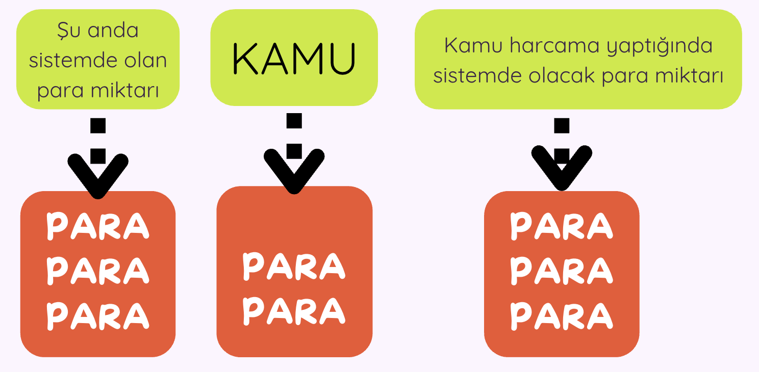 Kamu borçlanmasına çıkıldığında “şu anda sistemde olan para miktarı azalır” ama bu para kamunun merkez bankasındaki hesabına geçer ve kamu harcadığında bu para sisteme geri döner.